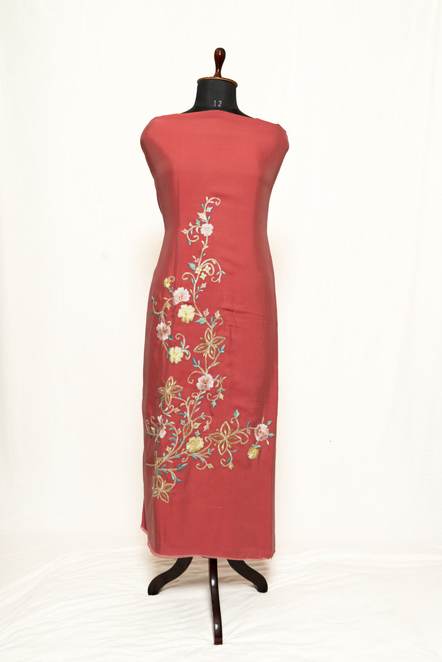 Dark Peach Full Suit with Organza Tie Dye Dupatta- 1315